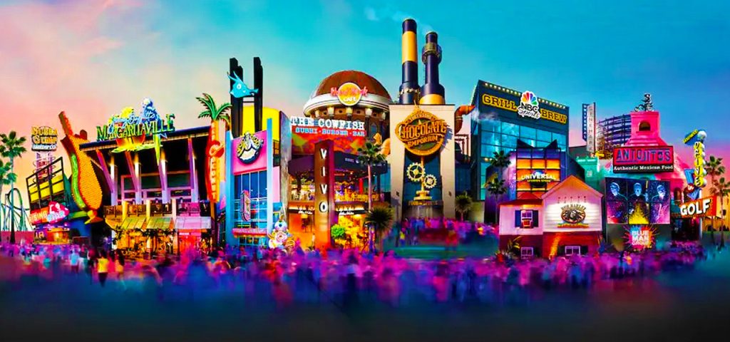 🎤 CityWalk — o centro de entretenimento, compras e restaurantes.
