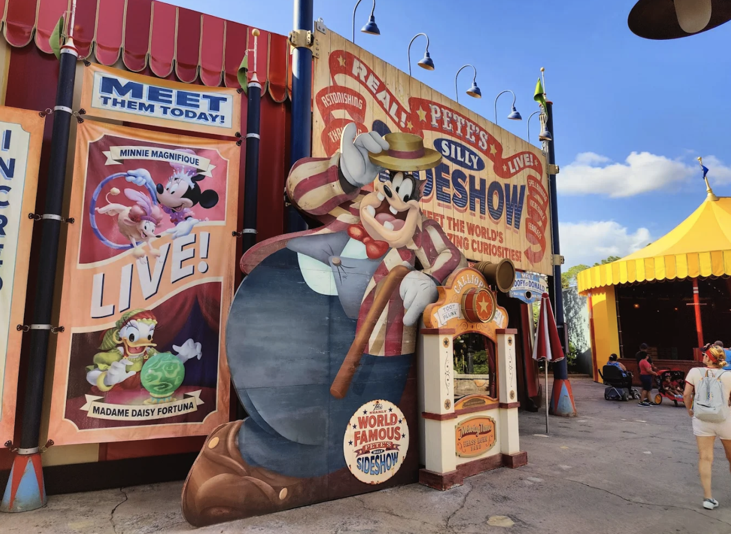 O Pete’s Silly Sideshow, aquele cantinho super divertido do Storybook Circus, está temporariamente fechado para reforma.
