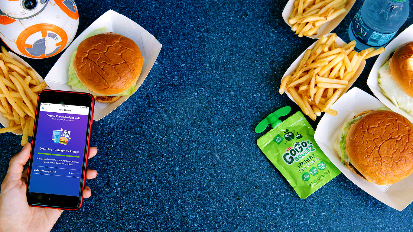 Quando ficar pronto, o app te avisa. Vá até a área de “Mobile Order Pickup” e… pronto! Pode devorar sua refeição com a consciência tranquila de quem economizou tempo de parque.