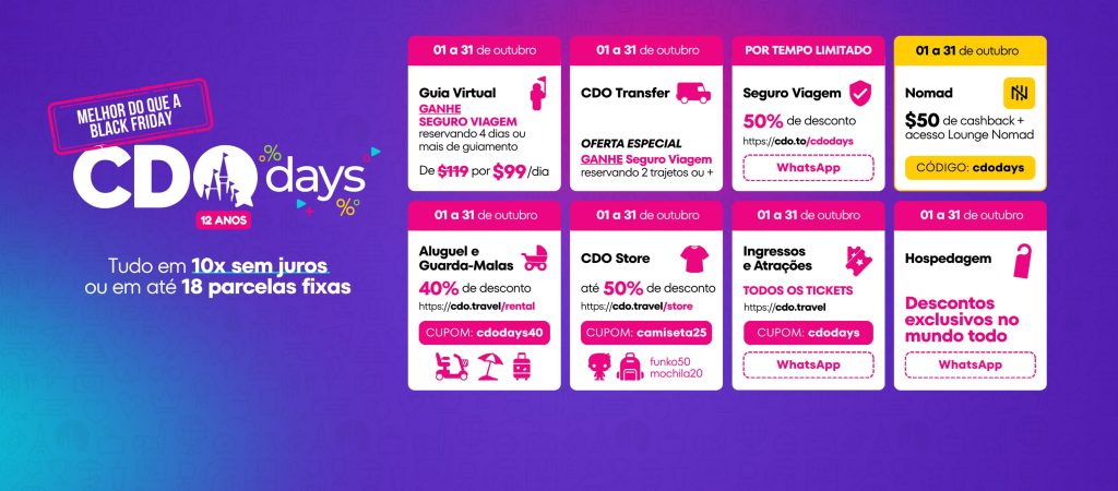 Ganhe 10% de desconto na compra da sua viagem dos sonhos nessa semana de #CDOdays.
