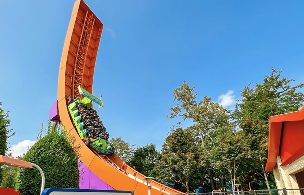 Próximo da Crush’s Coaster costuma ter personagem aparecendo — chance boa de foto sem filas absurdas.